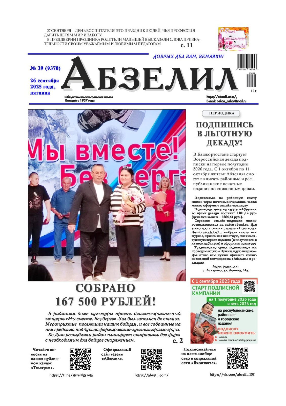 Свежий номер газеты "Абзелил"